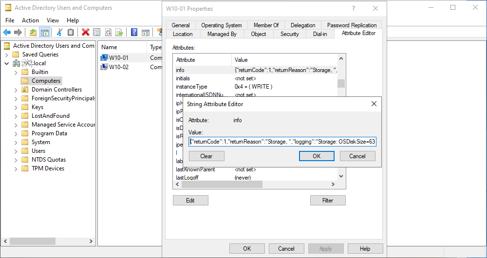 Tip: Start the Active Directory Users and Computers console (dsa.msc) and open the computer properties. Go to the Attribute Editor tab and check that the Info parameter now contains the results of checking your computer for Windows 11 compatibility.