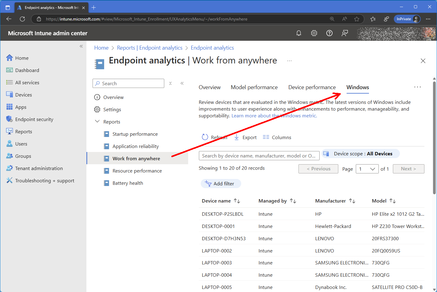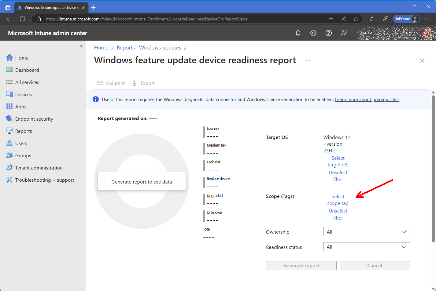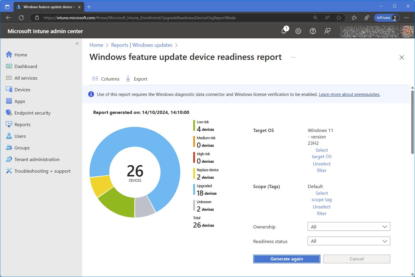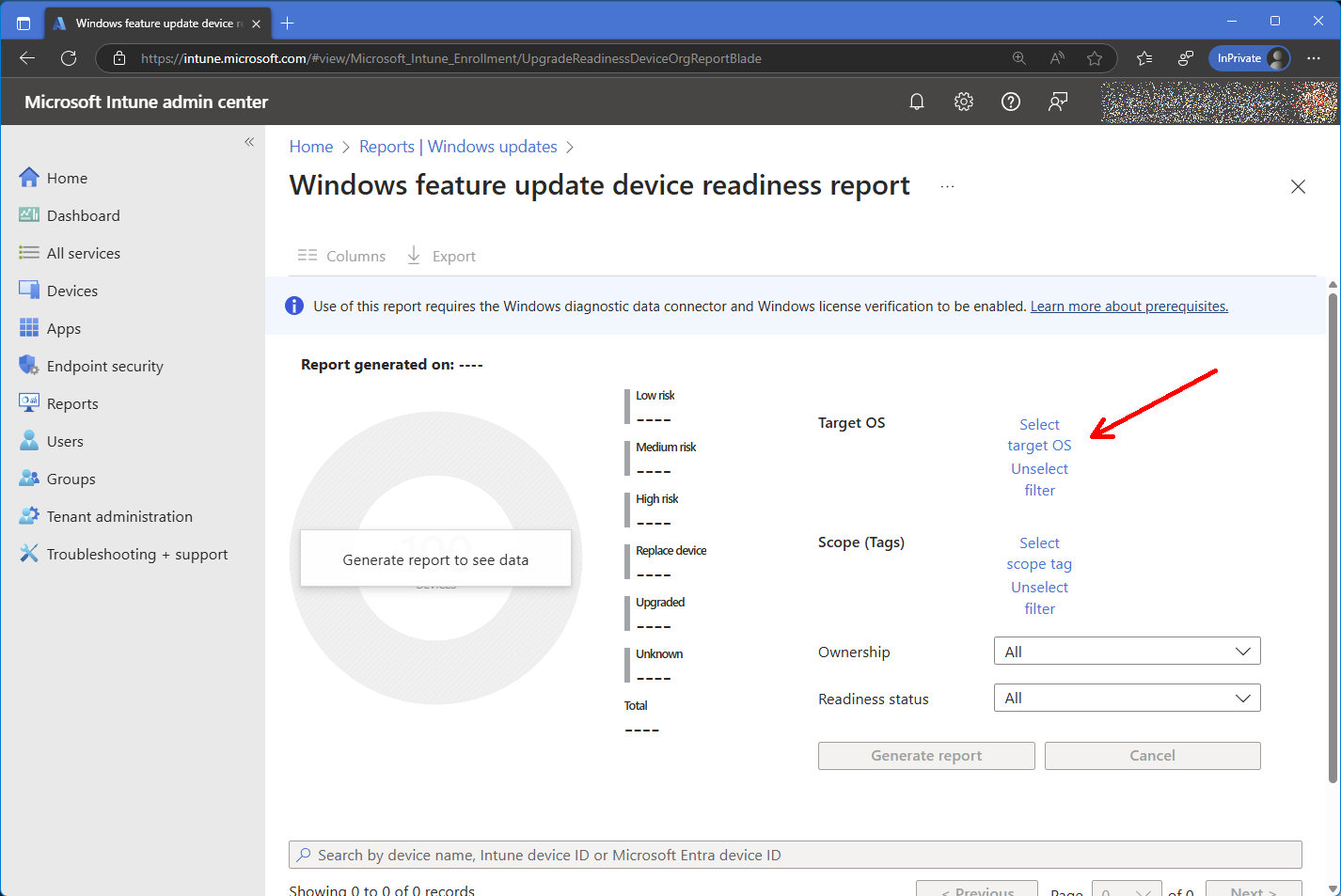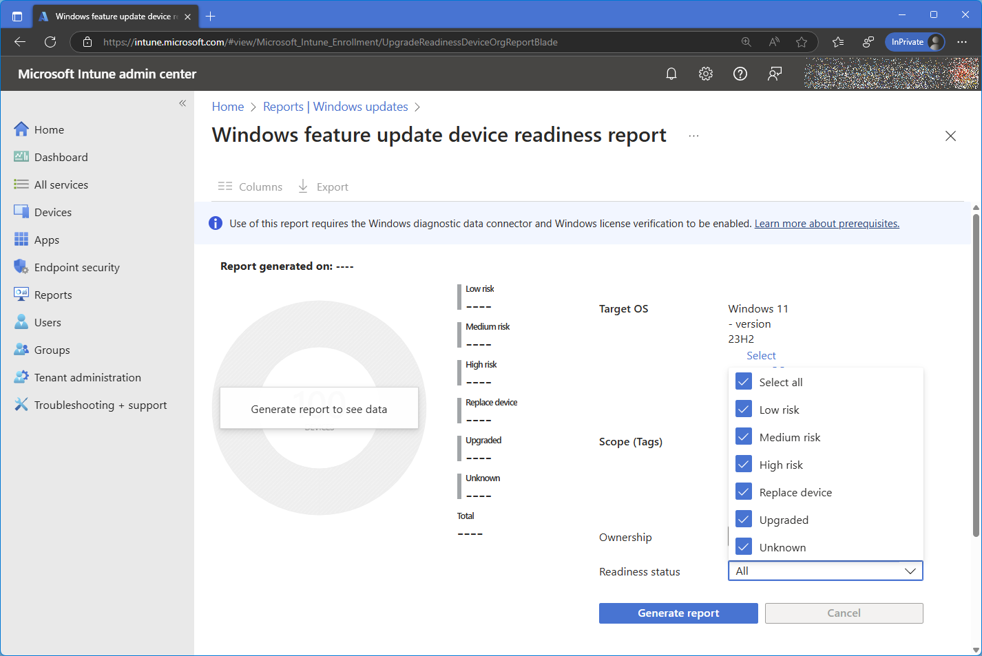 Windows Feature Update Device Readiness Report in Microsoft Intune