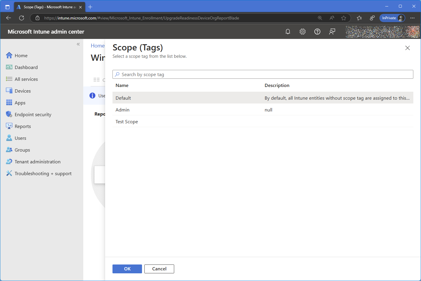 Choose Select scope tag and select the appropriate scope tag (e.g. Default, to include all devices) and choose OK
